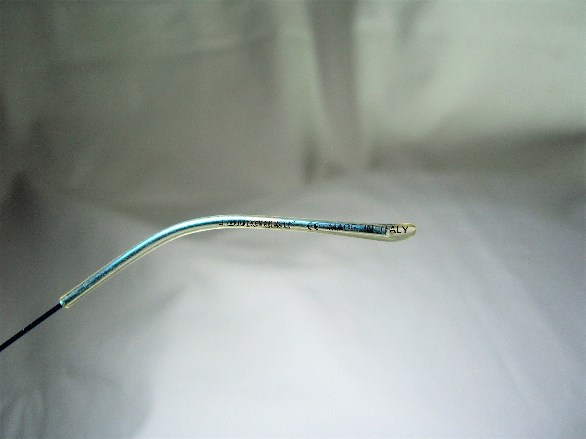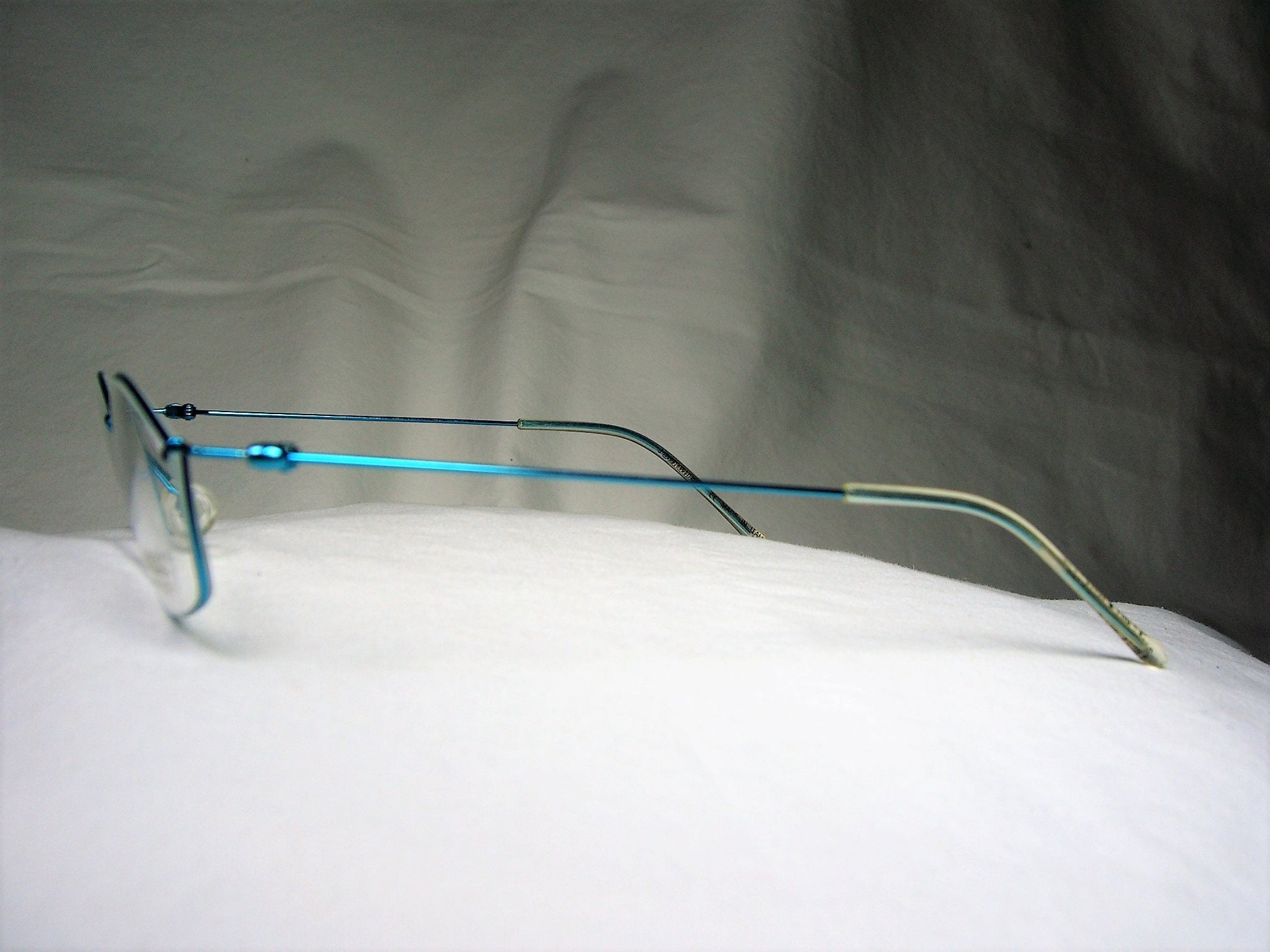 Hand made ultra light (weighing only 10 grams, lenses included), ultra flexible, ultra tough electric blue Titaninox 3000 (the most advanced Titanium alloy) wire frame, truly an ethereal design, equipped with proprietary high performance hinges.