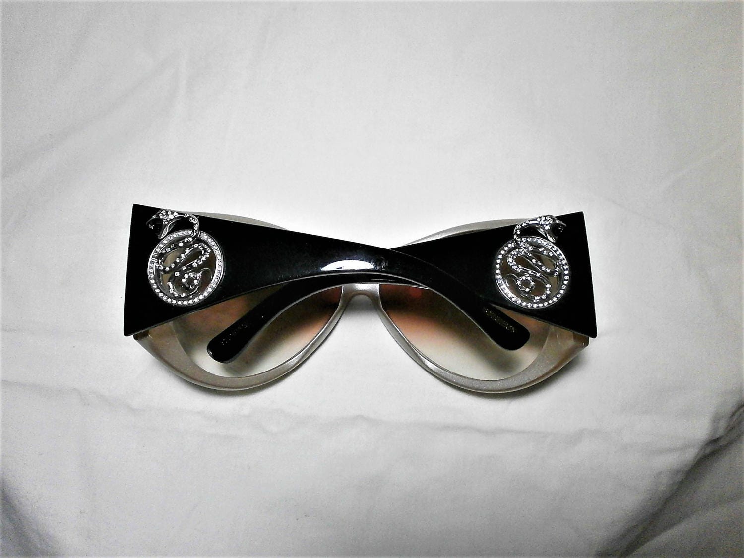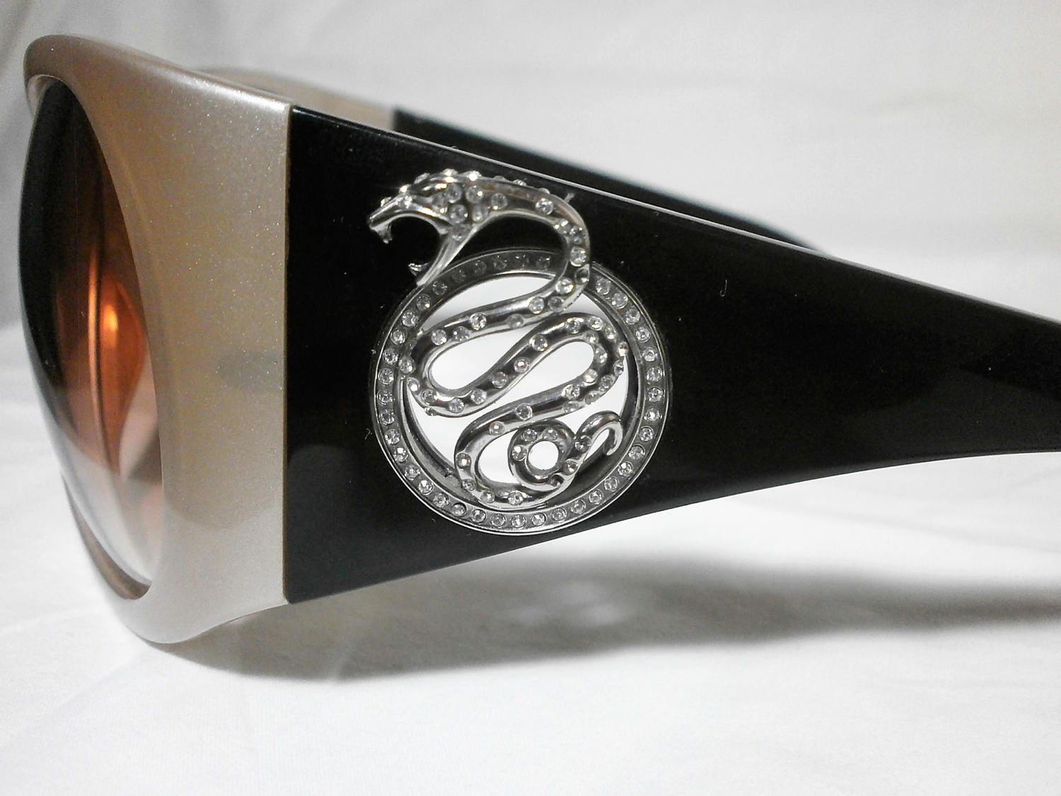 Sumptuously ornamented with the Boucheron symbol, Kaa-the snake, representing Infinity and Rebirth, in Swarovsky crystals, Palladium plated. With gold Boucheron implanted cartouches on the ends of the temple stems.